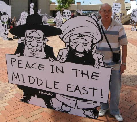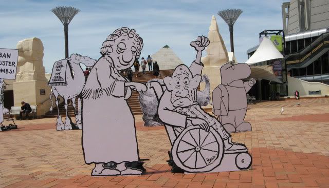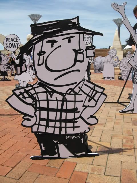 A promotional campaign has been developed by M&CSaatchi, Wellington. Around 50 life-size images from the cartoonists' work have been built and will be staging peaceful 'demonstrations' around the City from Monday 10 November. The first demonstration will be held at lunchtime in the grounds of Parliament. Following the completion of the Wellington event, the characters - which have been signed by the cartoonists – will be auctioned with net proceeds going to Plantu's Cartooning for Peace Foundation. Check my video at Youtube.