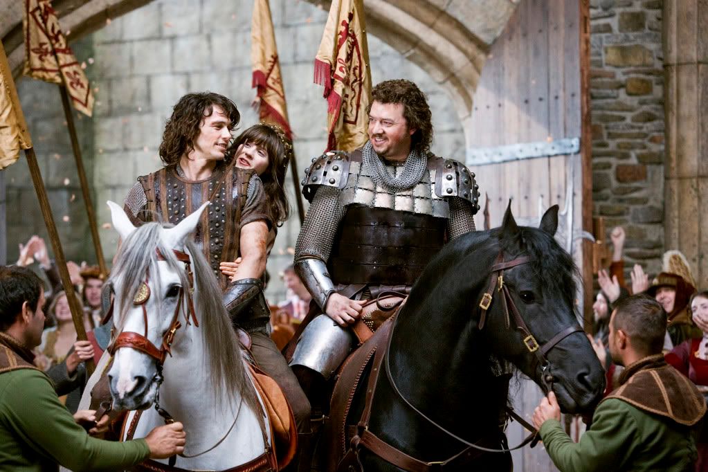 But when Fabious’ bride-to-be, Belladonna (Zooey Deschanel), gets kidnapped by the evil wizard Leezar (Justin Theroux), the king gives his deadbeat son an ultimatum: Man up and help rescue her or get cut off.